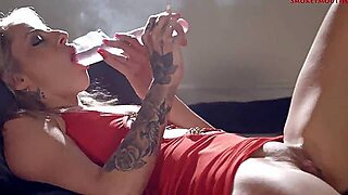 Sexy blonde Lucy Tyler smoking naked and masturbating to