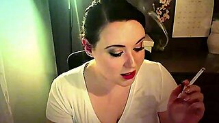 Intense Domme Smoking Tease: Red Lips Exhale & Piercing Stare Control