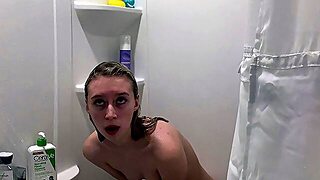 Alexis Tae catches her stepdad creeping on her while she masturbates in the shower